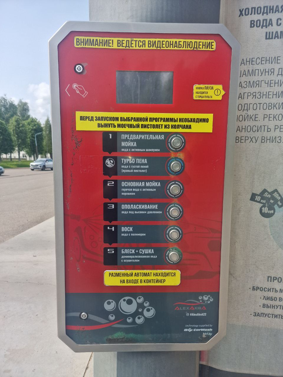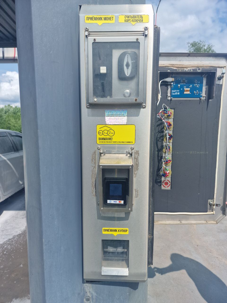 В данном случае мойка BKF последней конструкции, со стеклянными пультами, терминалы установлены в боковую заглушку пульта, закрыты крышкой со стеклом, оплата возможна не открывая крышку!